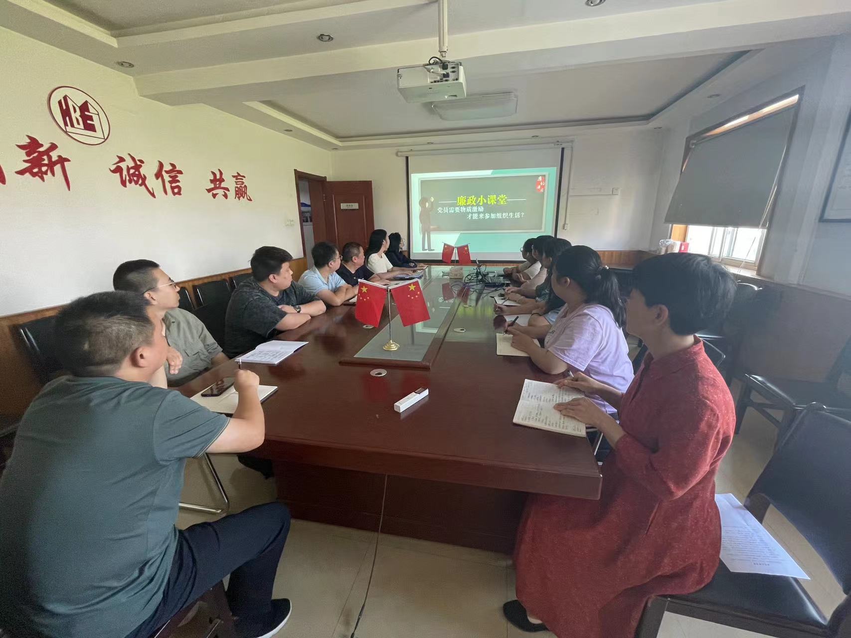 会上,大家一起观看了视频《党员靠物质激励参加组织生活 违反了哪些党纪党规?》
