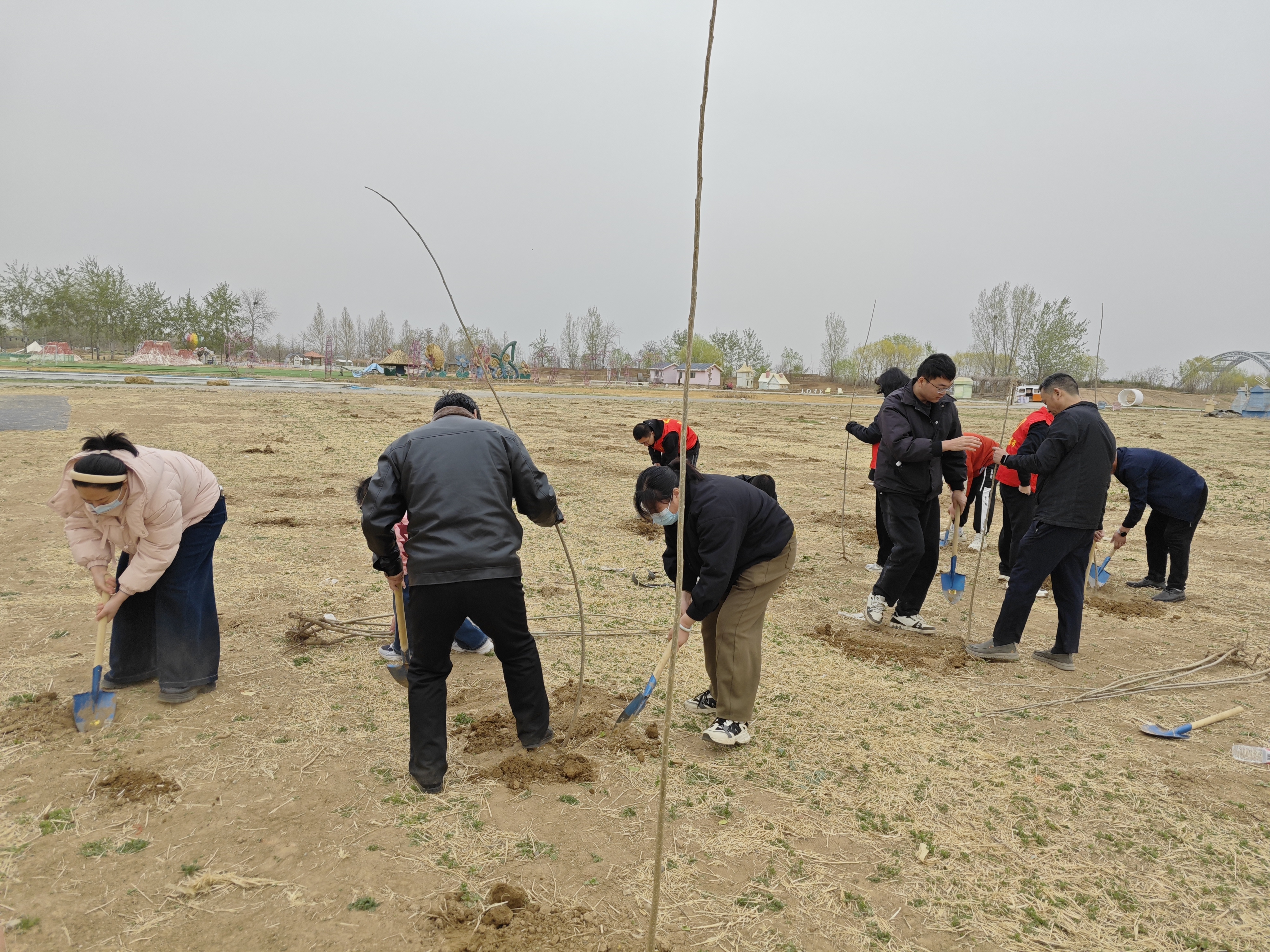 为深入践行习近平生态文明思想,贯彻落实习近平总书记关于全民义务植树重要指示精神,加快推进人与自然和谐共生的现代化,一分公司党工团联合举办“阳春三月万物苏 植树播绿正当时”主题活动。一分公司工会主席、主任会计师王占辉带队,带领党员、群众、团员志愿者共计20人,到石家庄正定趣那农场义务植树。