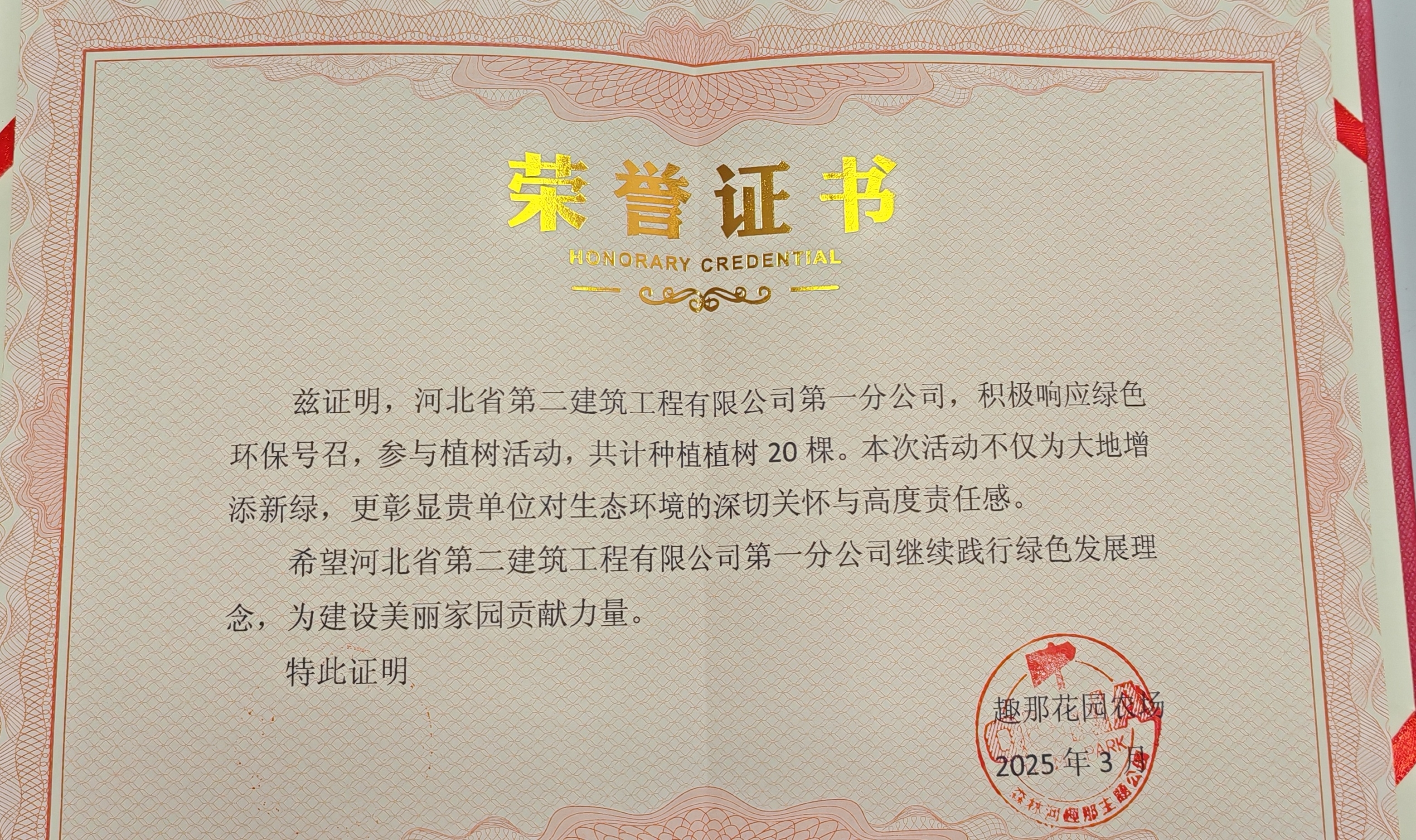 石家庄正定趣那农场负责人为大家颁发了荣誉证书,感谢大家为环保作出贡献,并合影留念。